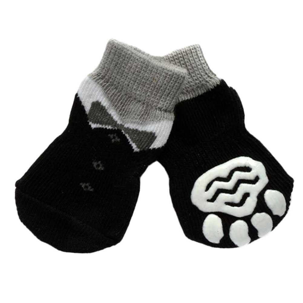 4 Pcs Cute Puppy Cat Socks Knitted Pet Socks Dog Paw Protection Poodle Teddy Socks, Black Suit