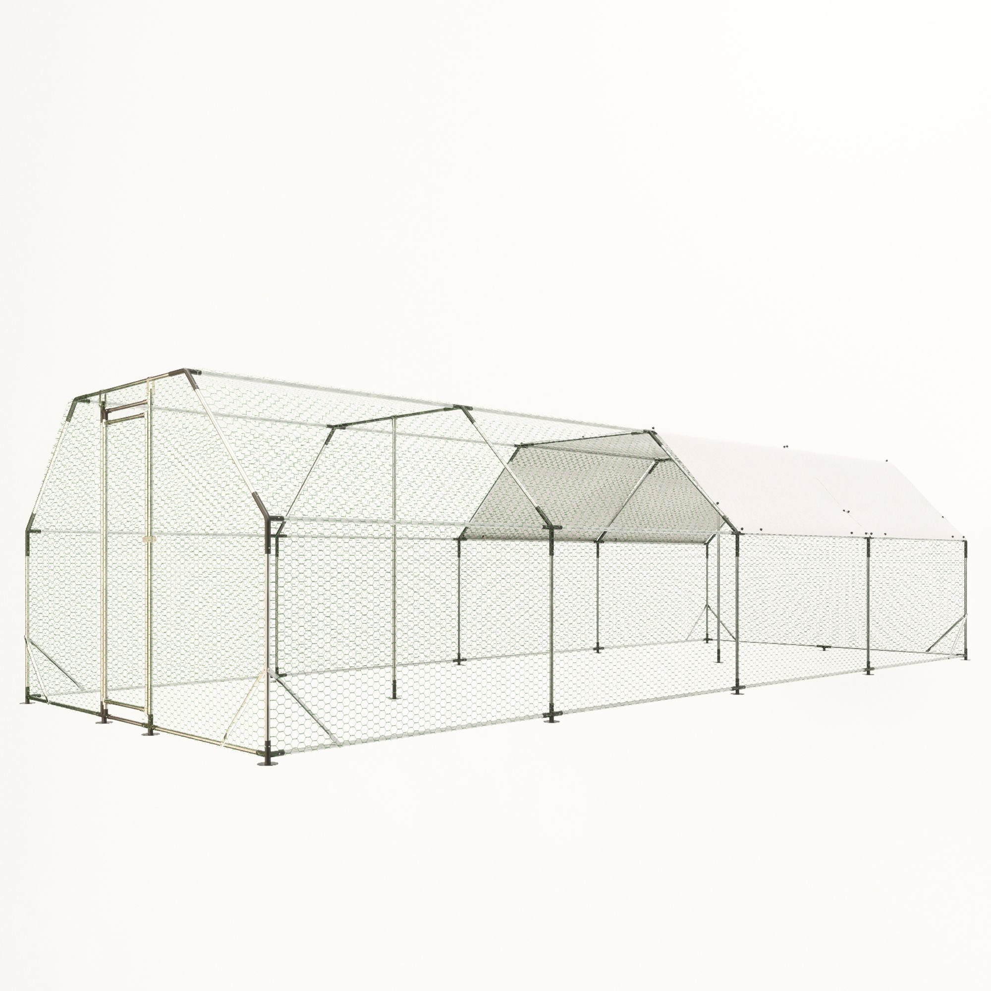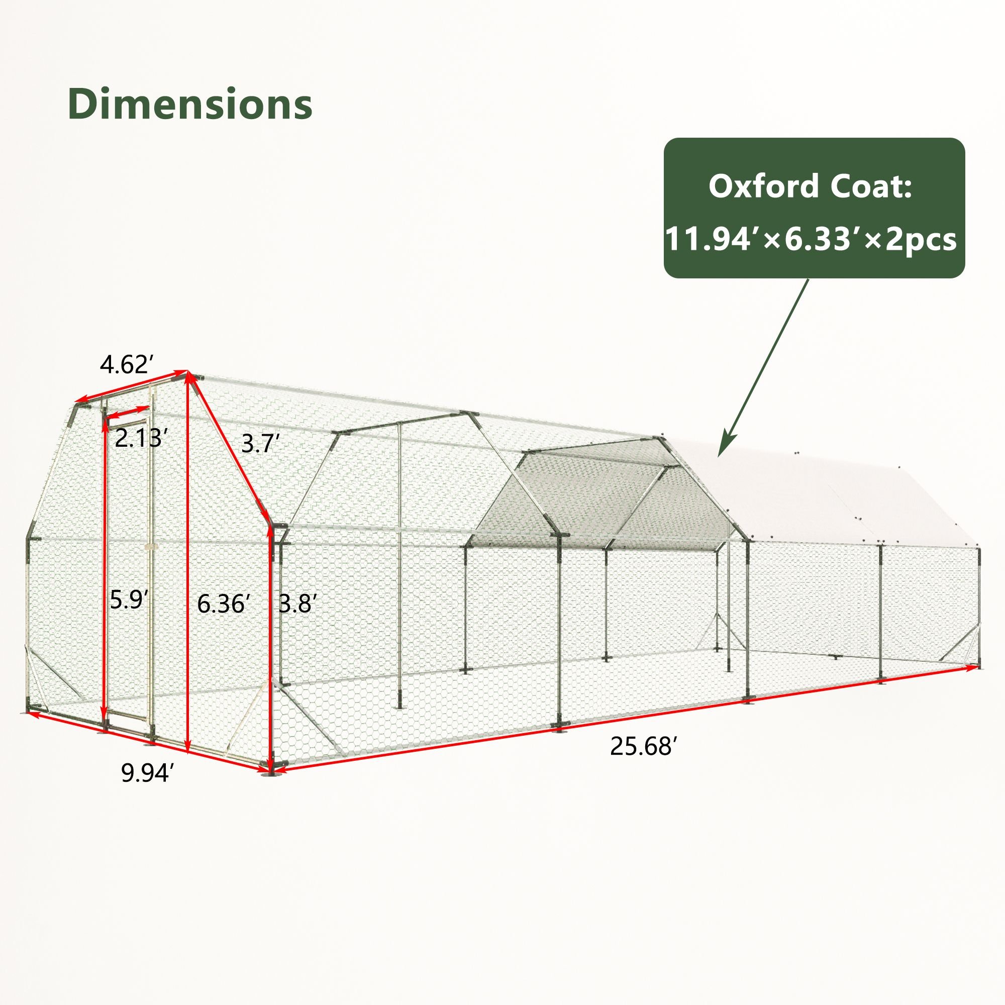 9.94 ft. x 25.68 ft. Galvanized Large Metal Walk in Chicken Coop Cage Farm Poultry Run Hutch Hen House