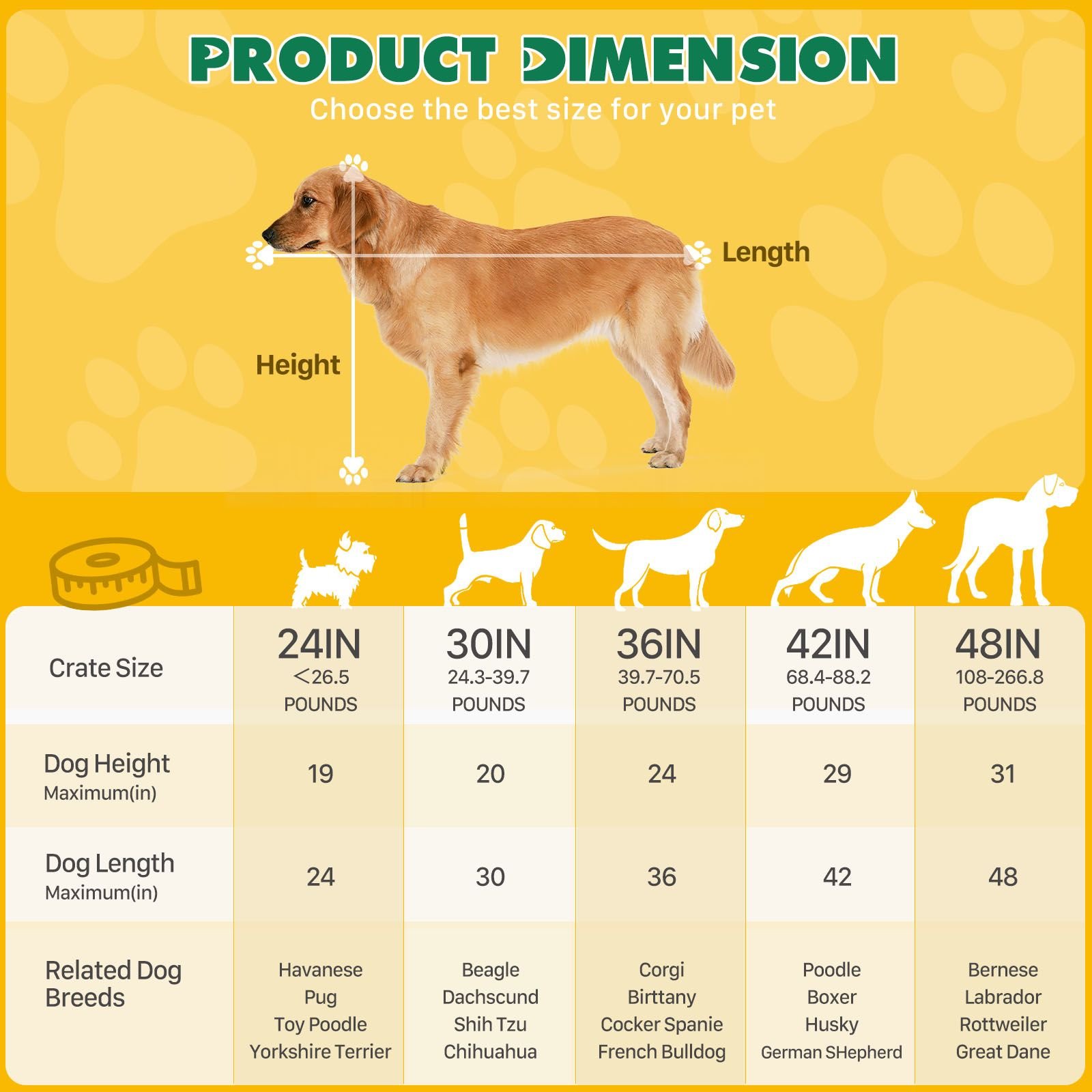 ENHANCED SECURITY: With rounded edges, smooth rounded corners and matching accessories, our dog crates prioritize safety. Thick metal mesh and double doors with 2 heavy-duty sliding bolt locks not only prevent your dog from escaping, but also provide optimal protection for your pet;