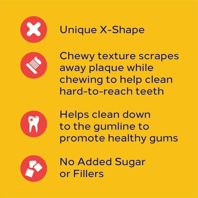 Our dental treat sticks have a unique X-shape design and are specially designed for adult large breed dogs, weighing over 30 lbs.