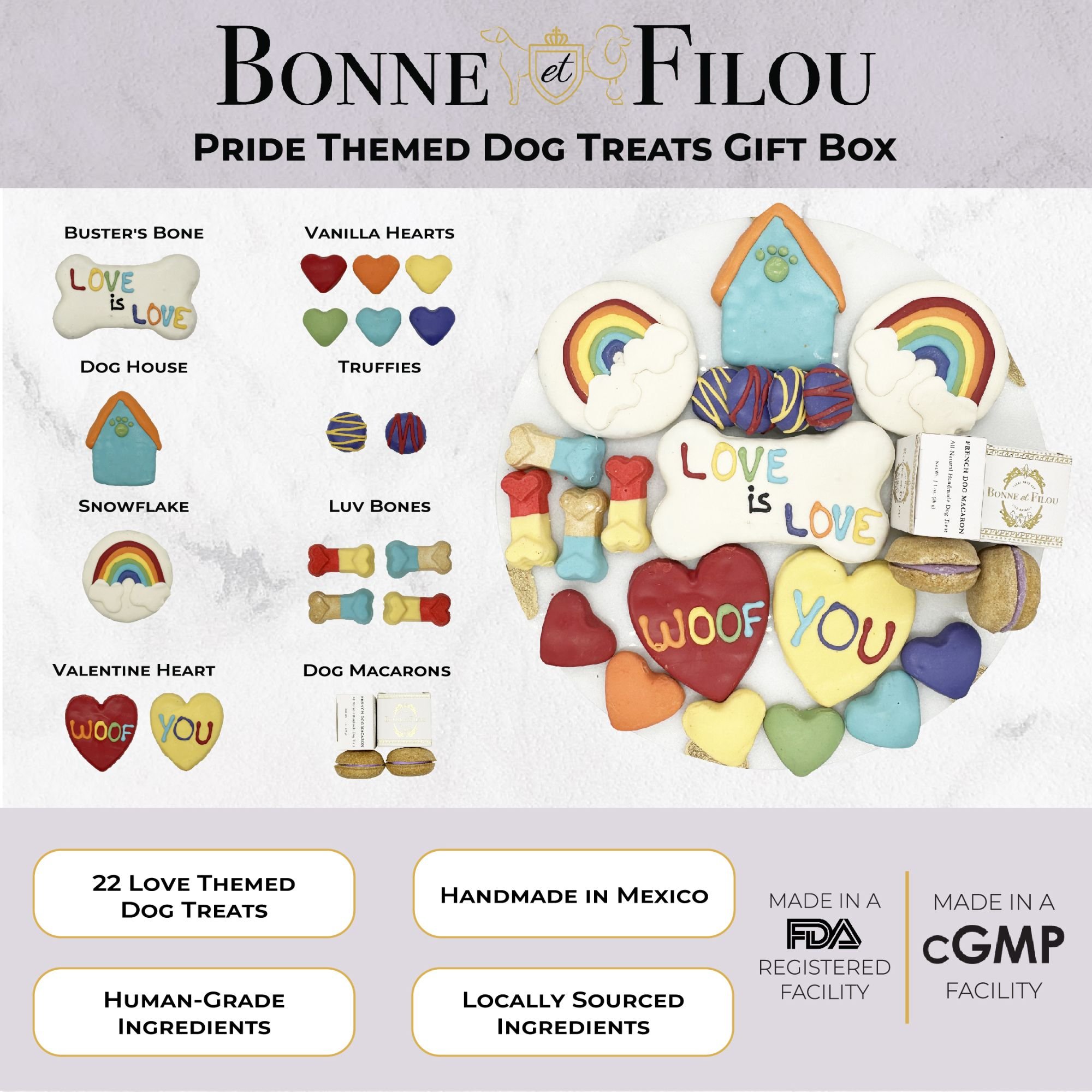 The Bonne et Filou Pride Themed Dog Treats Gift Box is the perfect gift to show your support of the LGBTQIA+ community! Get your limited edition gift box today and shower every unique individual in your life (on 2 or 4 paws) with treats to enjoy together!