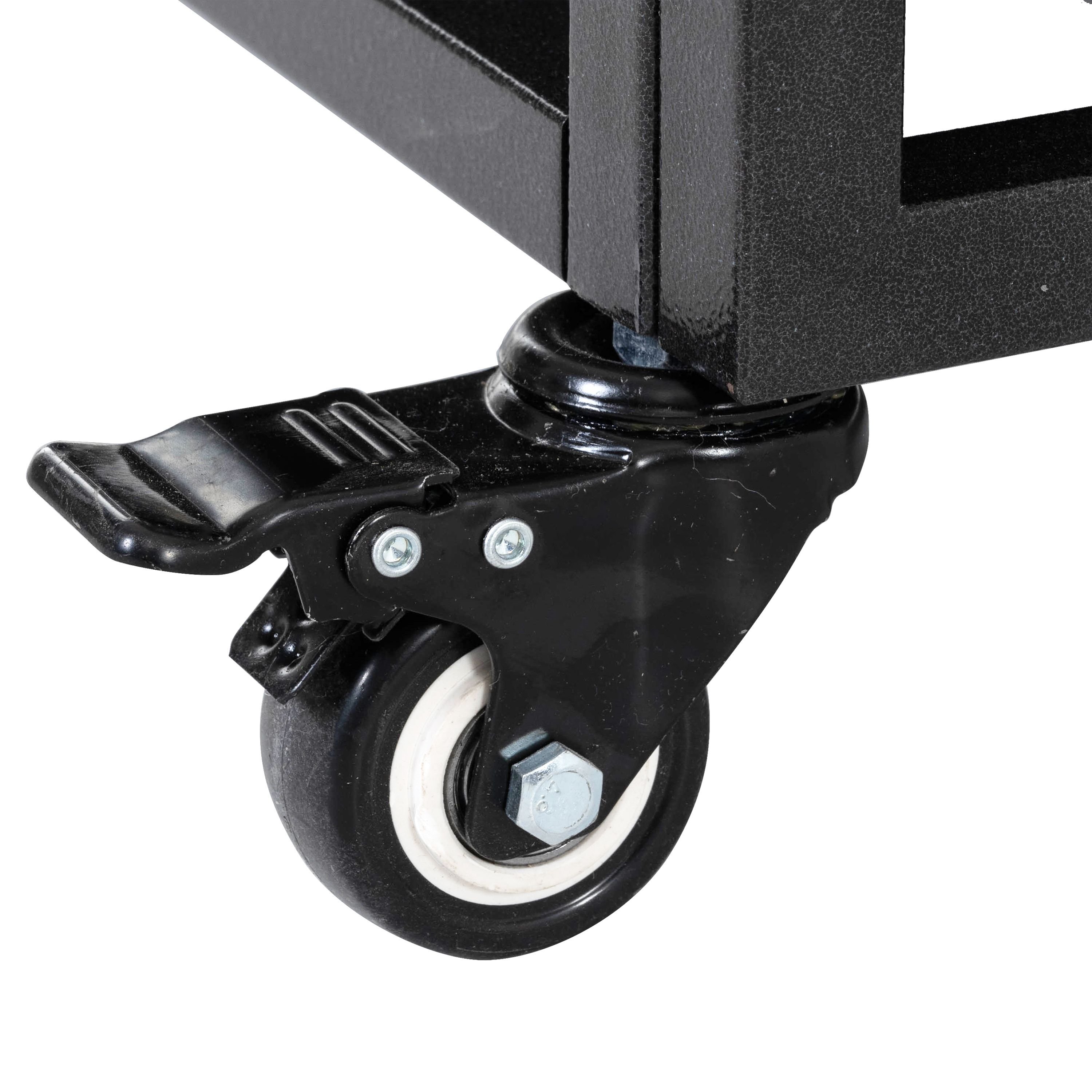 These crates also feature 4 lockable caster wheels, all of which lockable to prevent accidental movement.