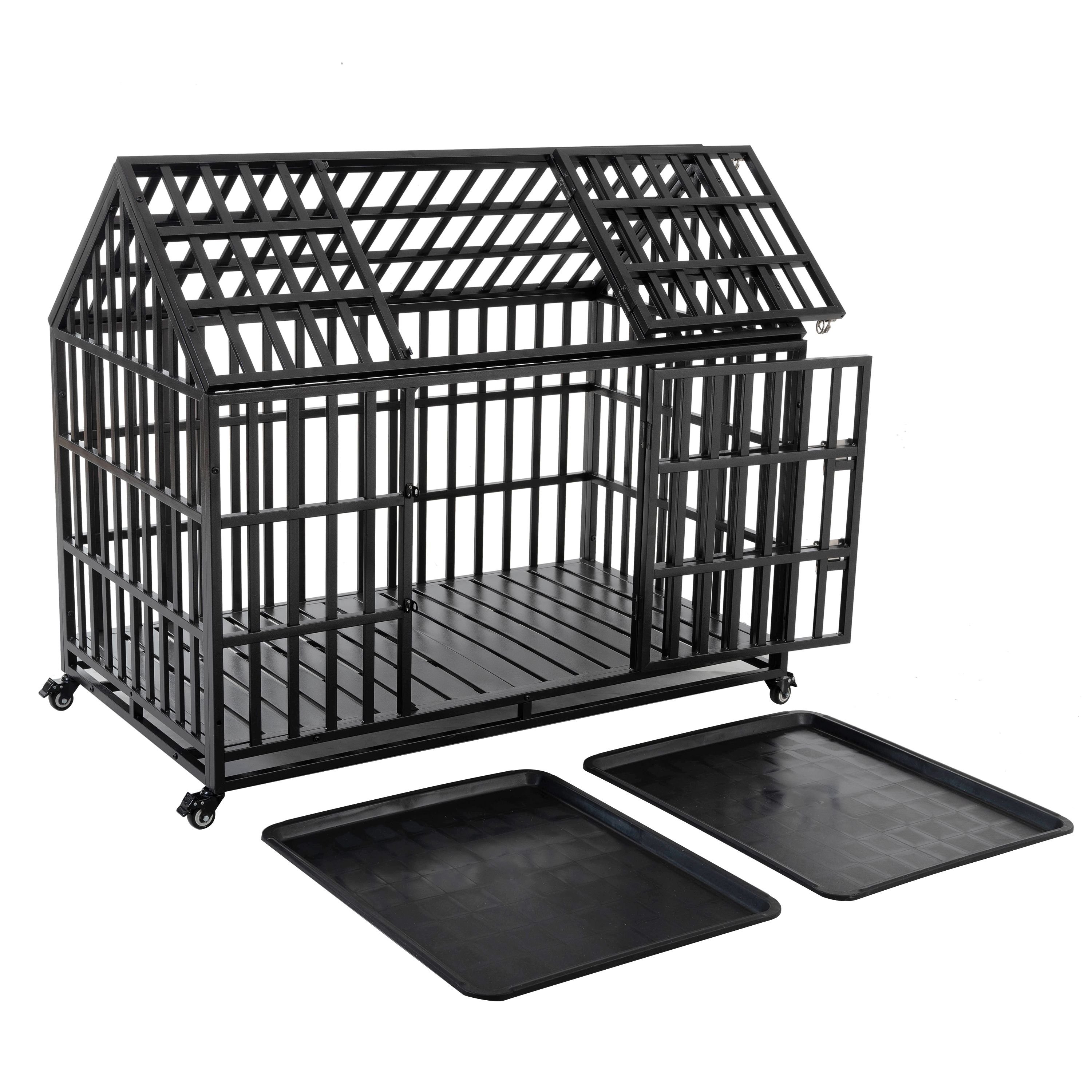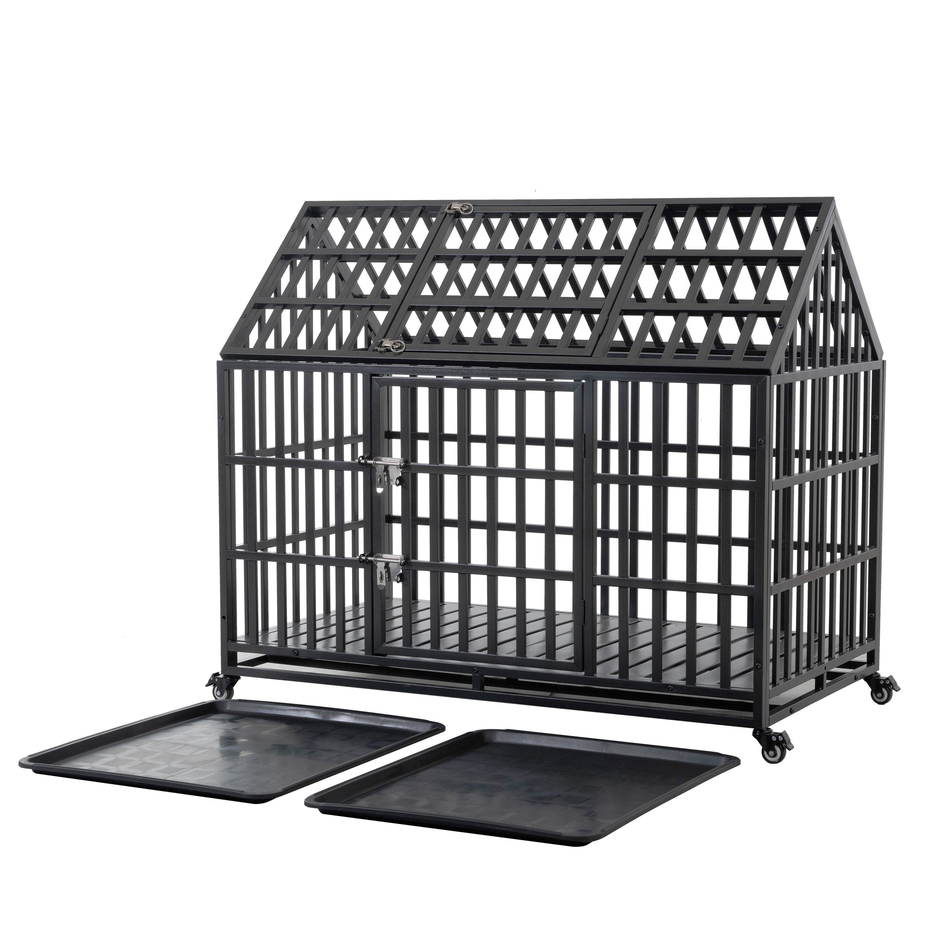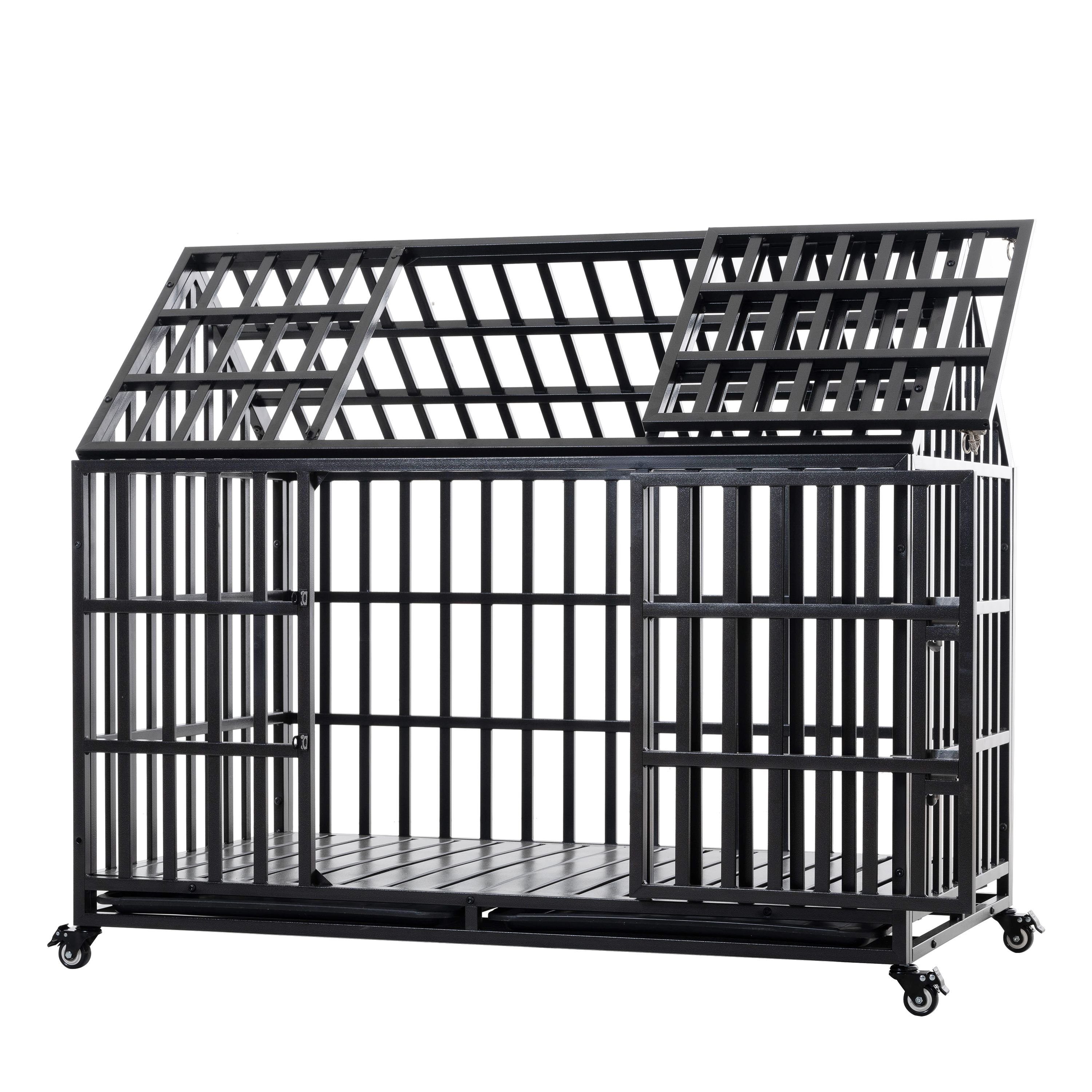 52" Heavy Duty Dog Crate Large Dog cage Strong Metal Dog Kennels and Crates for Large Dogs with 4 Lockable Wheels
