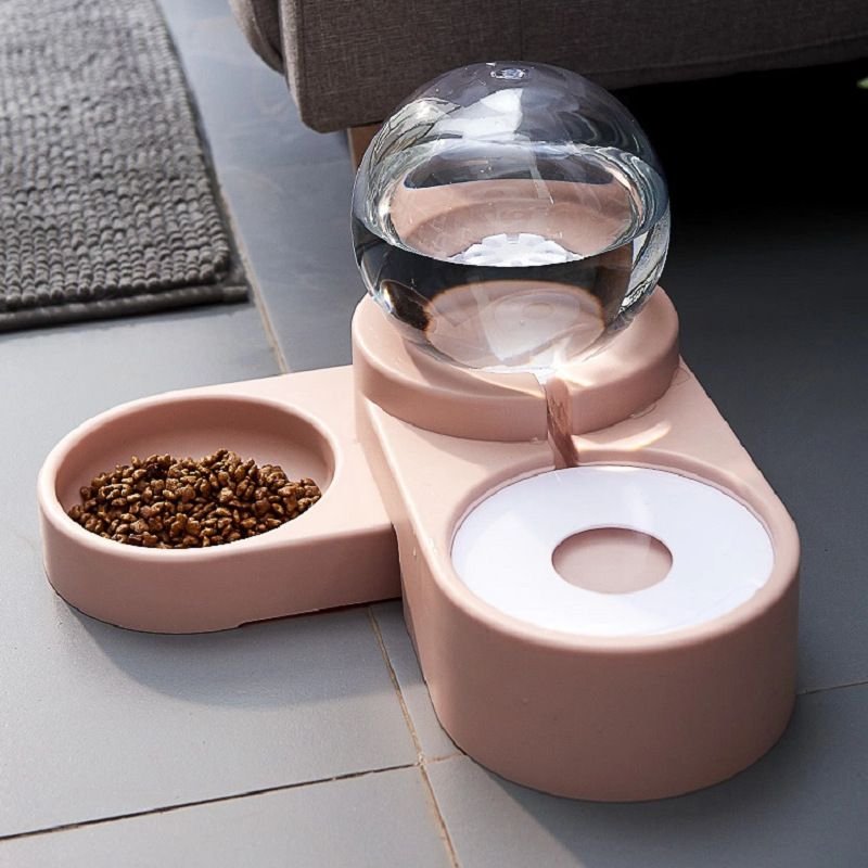 5.2-in-1 automatic water dispenser feeder: 2-in-1 feeder pet bowl design with automatic water bowl, it will automatically re-inject the water into the culture dish, keep the water full and clean whether you are at home or not.