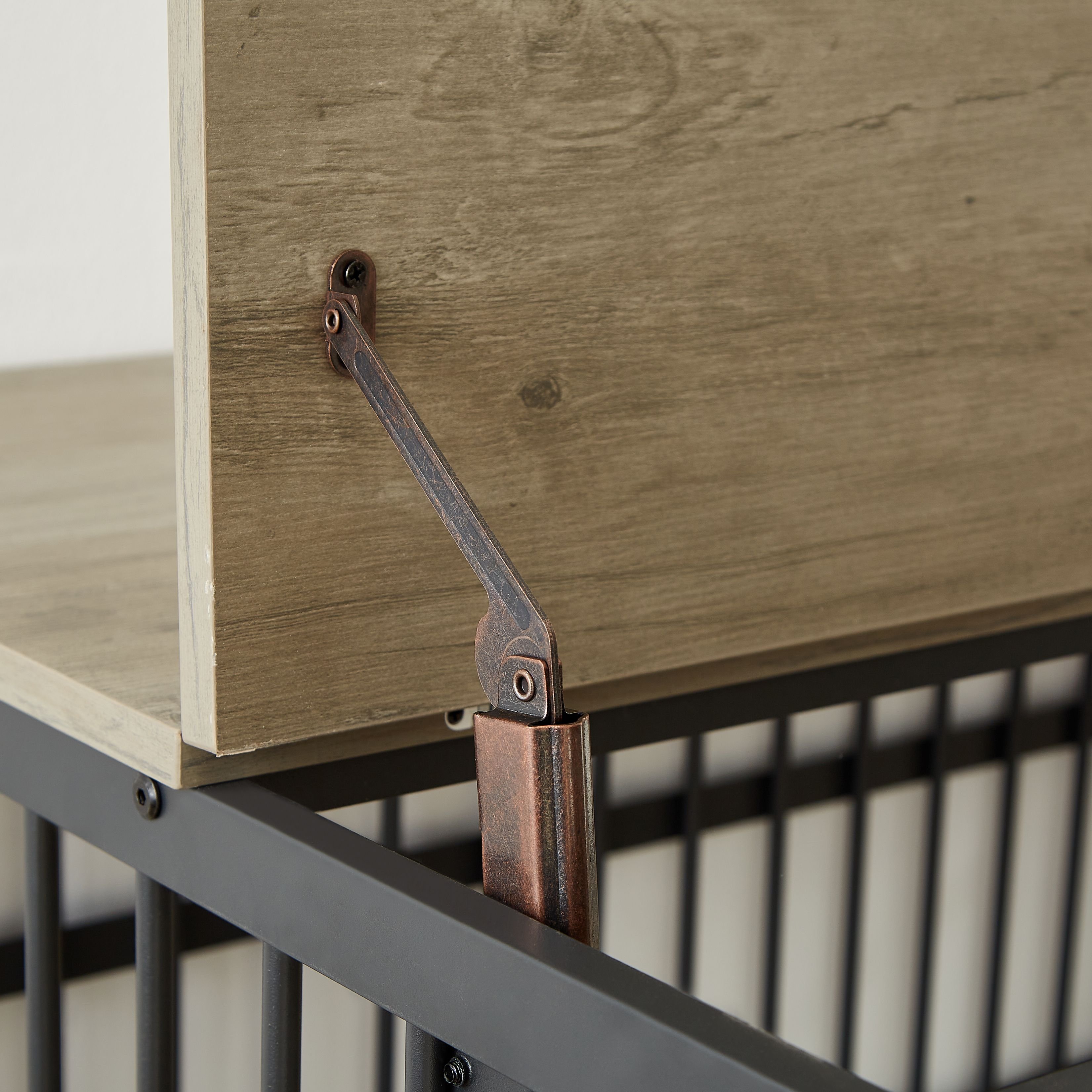 Product NameFurniture style dog crate wrought iron frame door with side openings, Grey, 43.3''W x 29.9''D x 33.5''H.