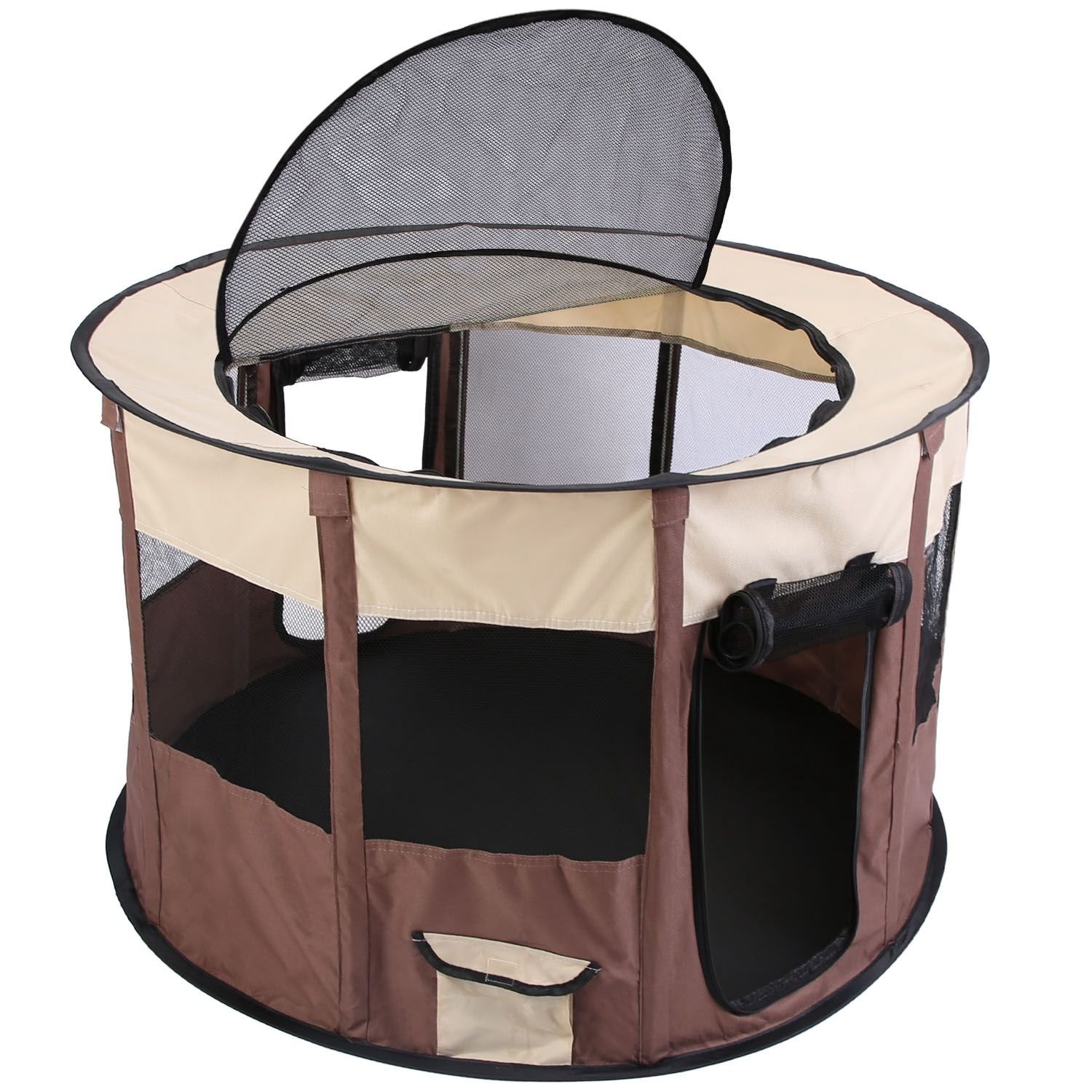 *Upper & Side Window with Zipper*:Designed with fully detachable upper window,this playing tent not only can be used as an enclosed room when your pet need security and protection,but also an opening playpen to enjoy fun. The 2 side door curtains with smooth zippers can be rolled up and fastened for your pets’ quickly in and out.