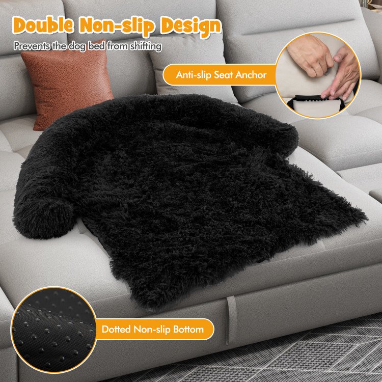 Home > Black Plush Calming Dog Couch Bed with Anti-Slip Bottom