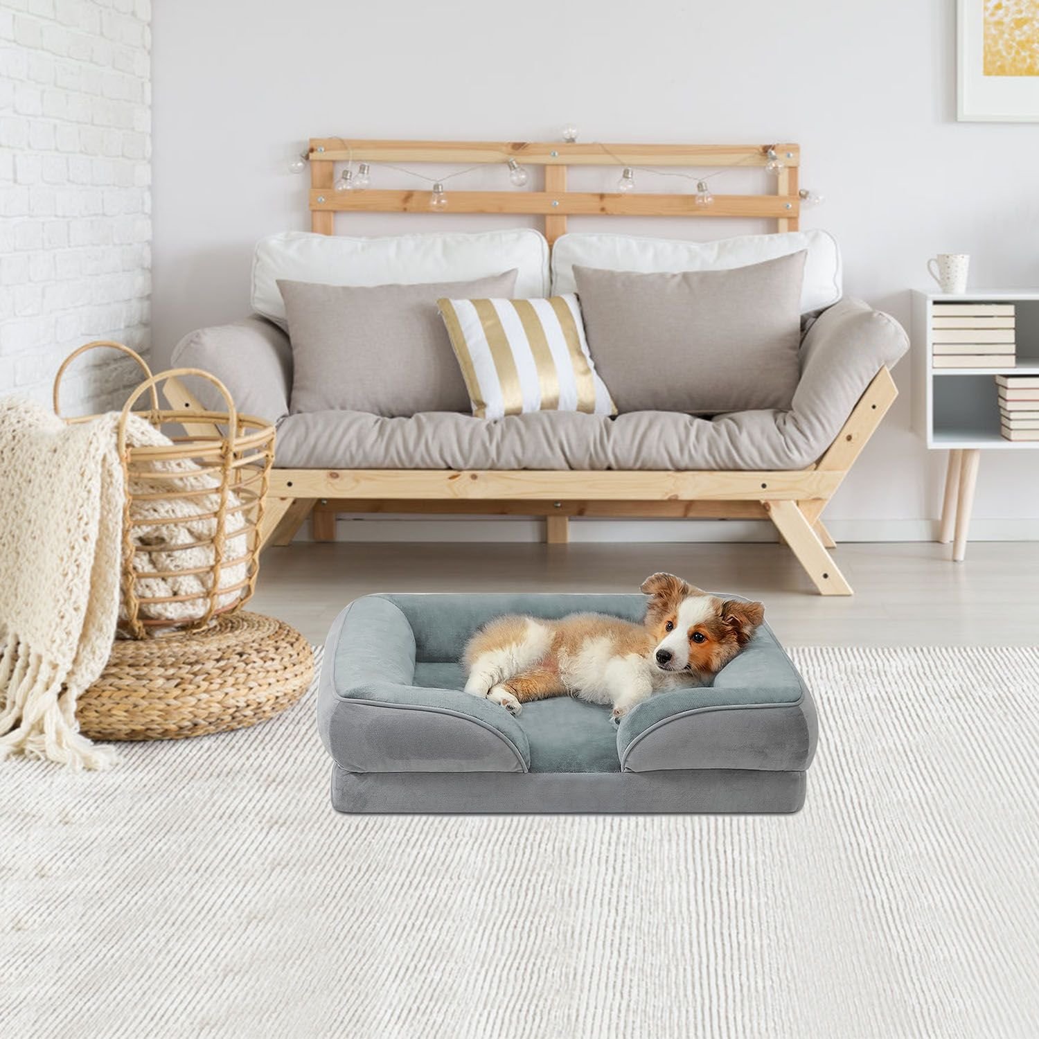 *Optional Sizes Dog Bed*:Come with 2 different sizes,our pet bed is designed for pets of various figures. M size measuring 27.55x22.83x7.08in(L x W x H) is suitable for cats or small sizes dogs up to 30lbs,L size measuring 34.64x25.19x7.87in(L x W x H) can hold pets up to 50lbs,like Corgi,Shiba,Border Collie,etc..