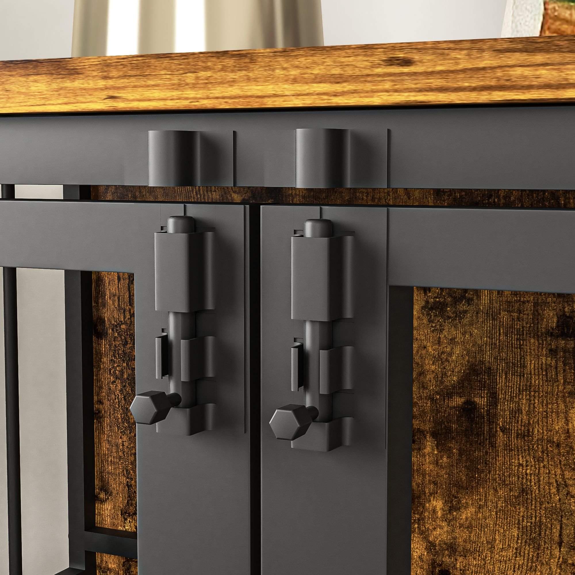 1.Product quality: The design of iron wood structure, the dog cage is composed of high quality hard steel and particle board, the material is strong enough, chew resistant and more durable.