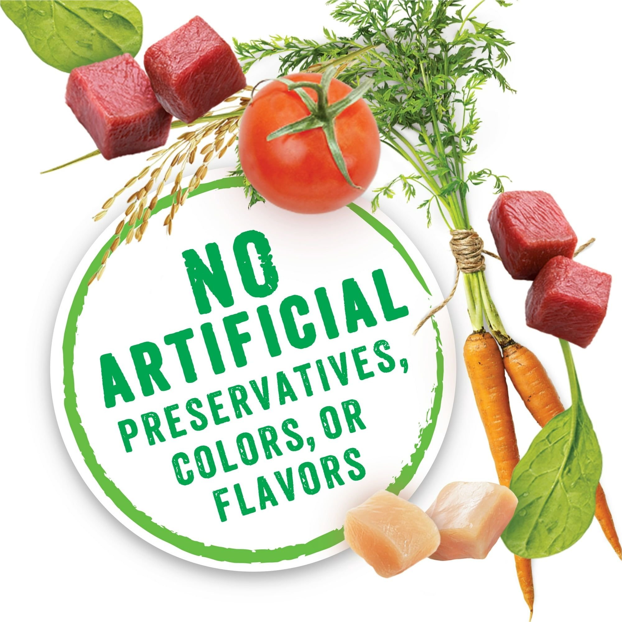 High protein dog food helps support strong muscles and contains no artificial colors, flavors or preservatives
