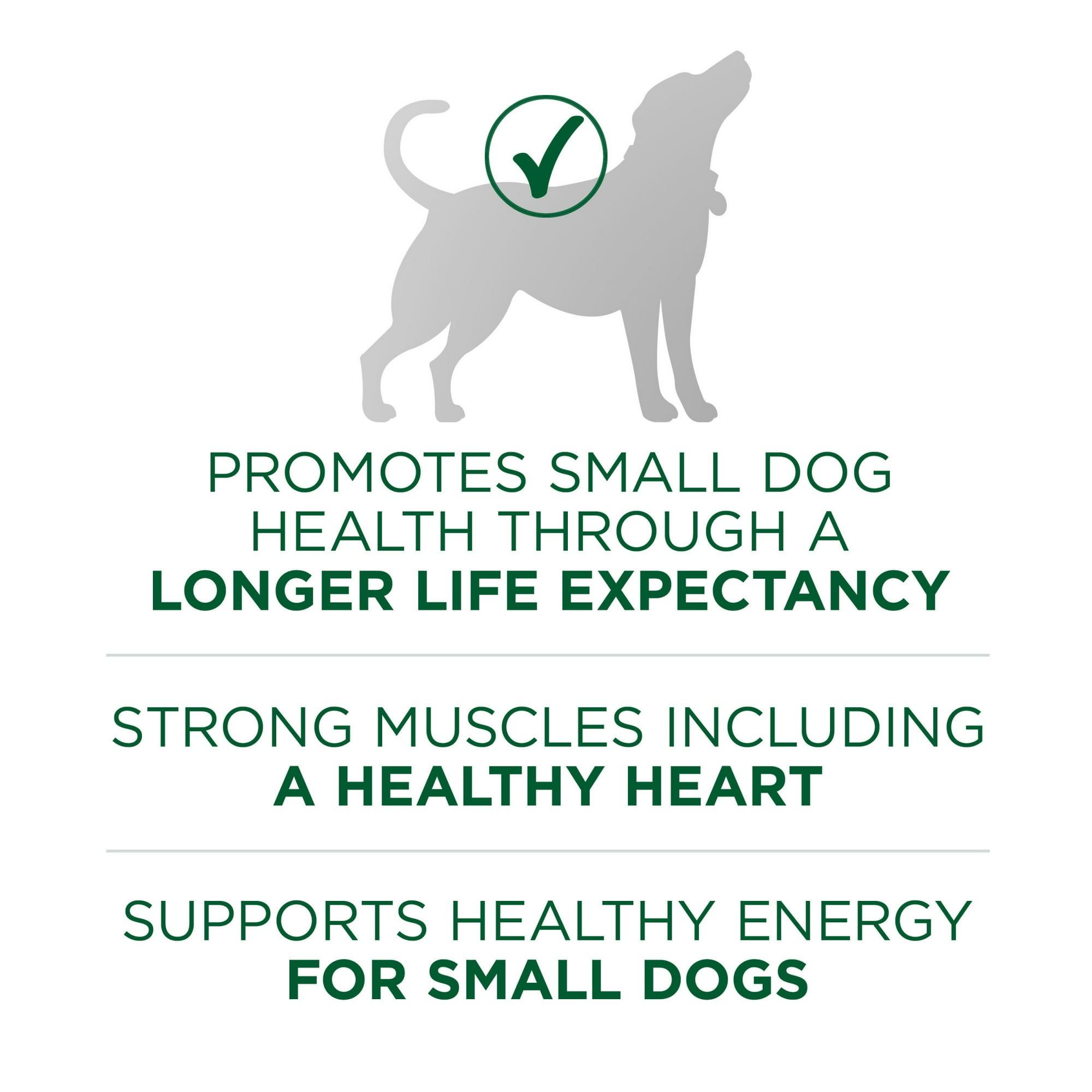 A SmartBlend of high-quality ingredients in this easily digestible lamb dog food formula supports small dog health and energy throughout a typically longer life expectancy