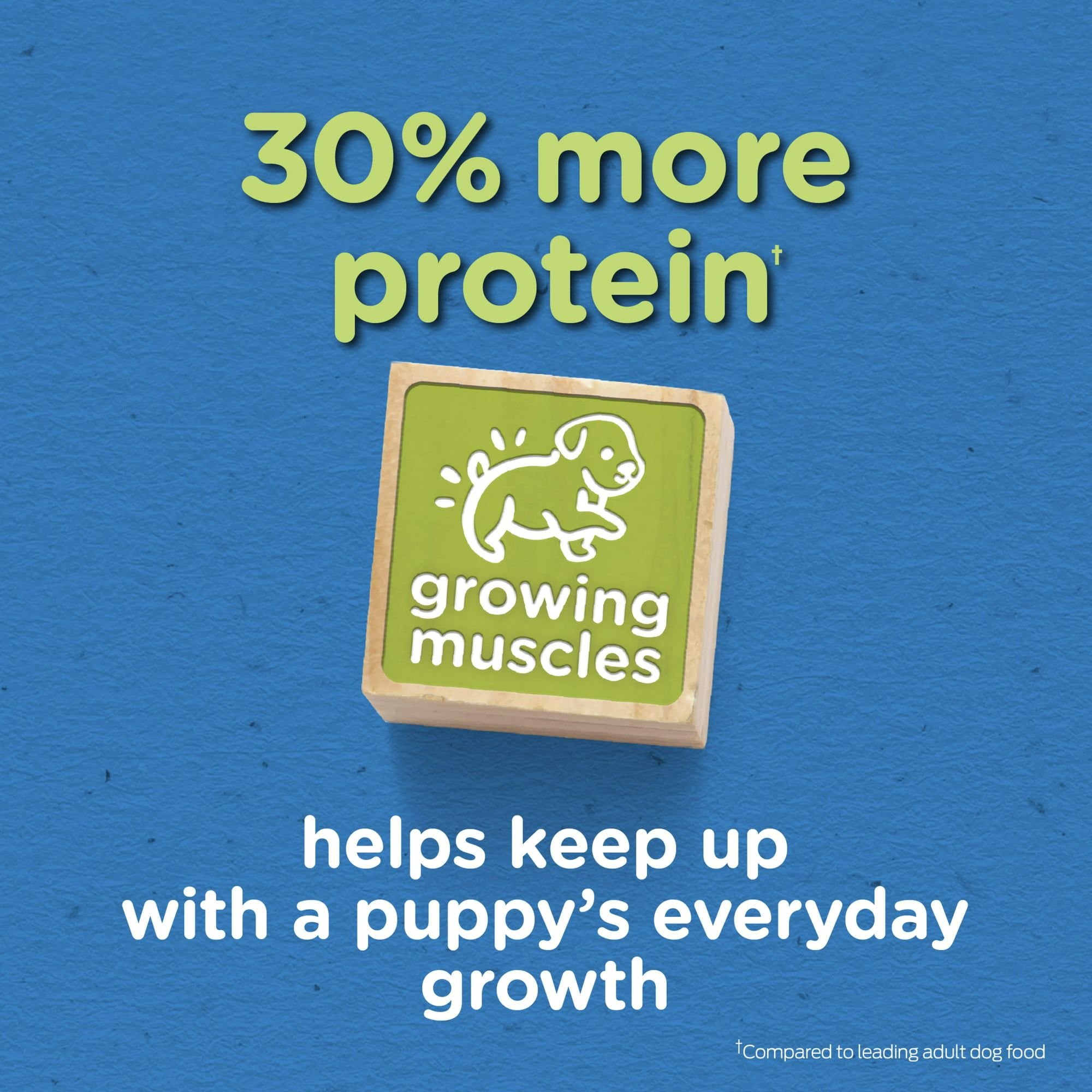 Be sure your new puppy gets the texture and taste he deserves with Purina Puppy Chow Tender & Crunchy dry puppy food. Made with real beef, this high protein dry dog food for puppies is packed with 30 percent more protein than the leading adult dog food in a delicious combination of tender chunks and crunchy dog food kibble that keeps him satisfied at mealtime. Every serving contains 100 percent essential nutrients, including DHA for the specialized nutrition puppies need to grow big and strong. Offer up this puppy dog kibble as part of his daily feeding regimen, and let the mix of flavor and texture satisfy his hunger as he matures into his active adult years. Purina Puppy Chow Tender and Crunchy puppy food provides the building blocks of puppy nutrition to help lay the foundation for a healthy, active life. With real beef, the Healthy Start blend provides high-quality protein along with DHA for brain and vision development and 100 percent of the essential nutrients for your puppy's first year.