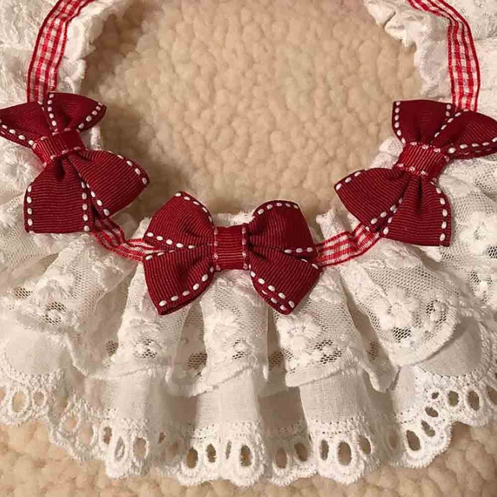 Red Bowknot Retro Lace Collars Handmade Dog Necklace Cat Neckerchief 8.2-11.2"